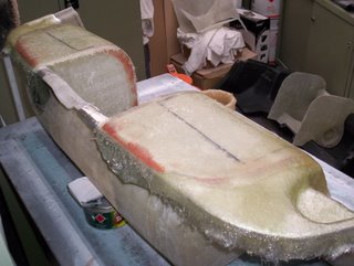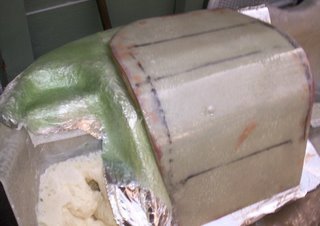 And while this is still wet, apply a Layer of Matt over the entire Pod, Top and Front and 'Wet Area'..........Squeezing out Air Bubbles as you go to get a tight fit..........